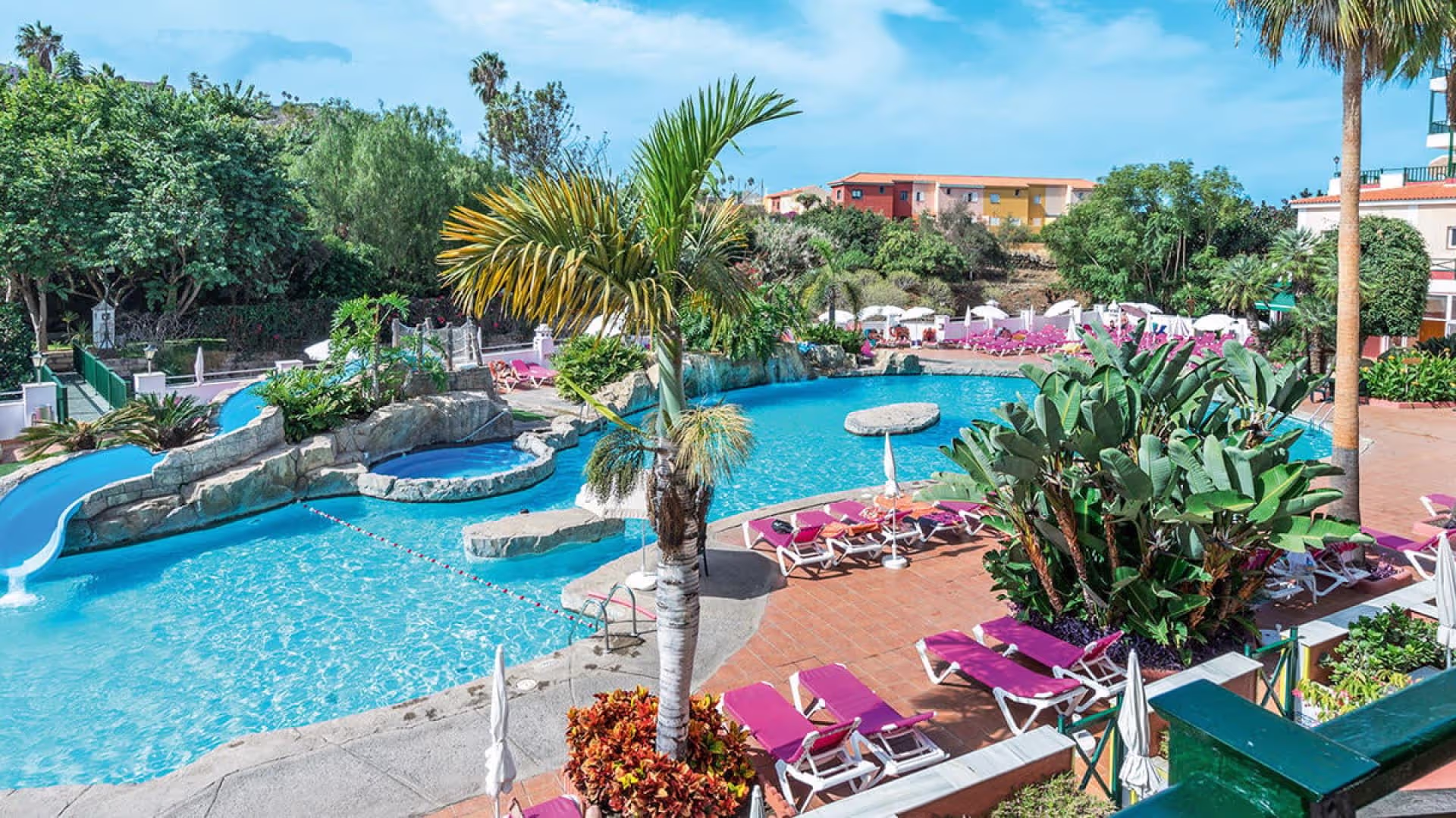 Niezapomniane wakacje zarówno dla dzieci, jak i ich rodziców! Zachwyca pięknym, malowniczym położeniem, dużym ogrodem ze śródziemnomorską roślinnością i kwiatami oraz restauracją z rewelacyjnym widokiem, daniami tematycznymi i pokazami gotowania. Do dyspozycji Gości jest duży basen ze zjeżdżalniami, centrum spa i bogaty program animacji. Polecany ze względu na spokojną okolicę i równocześnie łatwy dostęp do wakacyjnych atrakcji – do centrum Puerto de la Cruz i na plażę Gości dowozi bezpłatny, hotelowy bus.