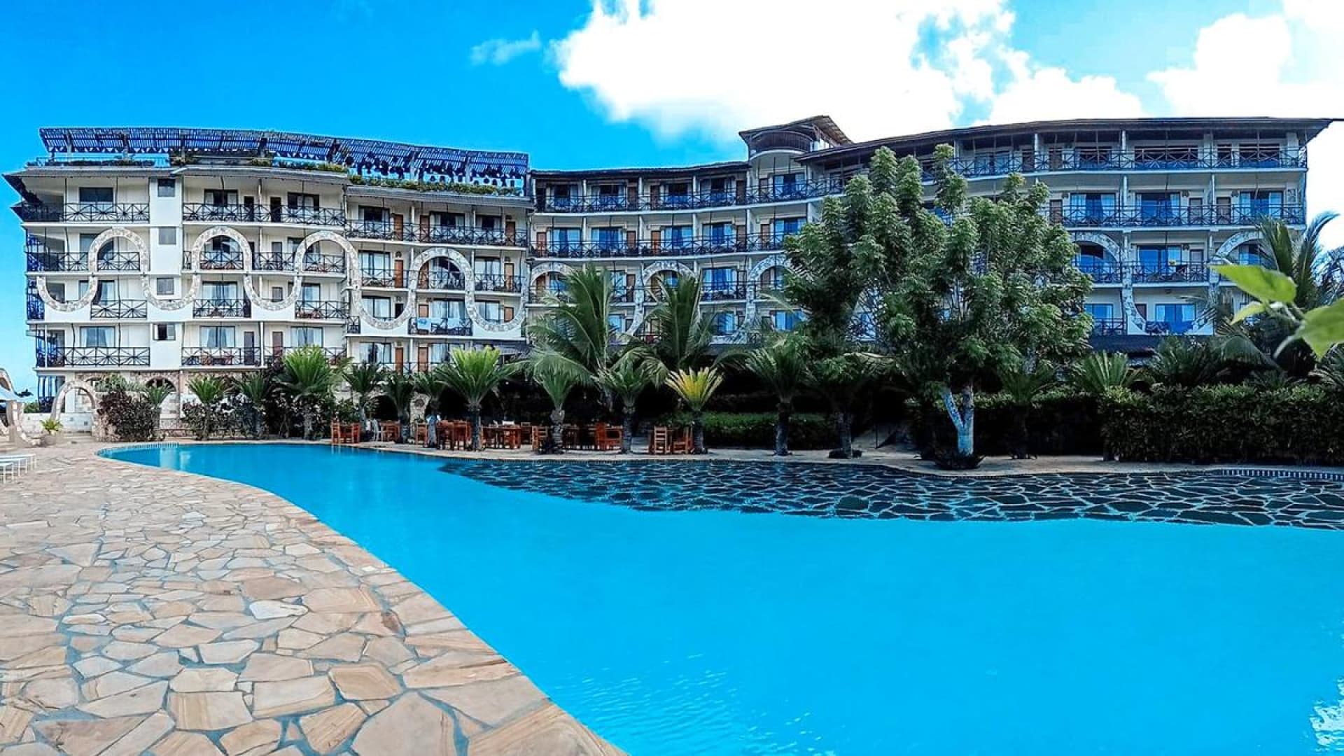 Położony blisko plaży z białym i miękkim pudrowym piaskiem, to doskonała propozycja na błogi urlop na pachnącym goździkami i wanilią Zanzibarze! Do dyspozycji Gości przygotowano wszystko, co potrzebne podczas egzotycznych wakacji. Na miejscu 3 restauracje, a także 3 bary, w tym jeden na plaży. Jeśli wolisz, możesz zostać w hotelu, gdzie czeka na Ciebie basen, siłownia, boisko do siatkówki plażowej, a także animacje. Całość udanego wypoczynku dopełni miła i pomocna obsługa oraz funkcjonalnie urządzone pokoje.